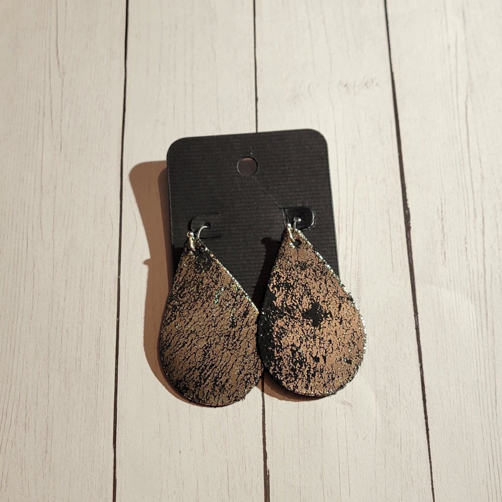 Silver and Black Faux Leather Teardrop Earrings (READY TO SHIP)